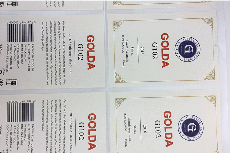 產品名稱:酒類不干膠標簽紙 顏色:單色、四色、專色 使用膠型:油膠、水膠、熱熔膠 規格:根據客戶自己定制 形狀:圓形、長方形、橢圓形、自定義形狀等 使用底紙:黃色離型紙,白色離型紙,白色格拉辛等 材質:鏡面不干膠,PVC不干膠,易碎紙,銅板不干膠,牛皮紙等